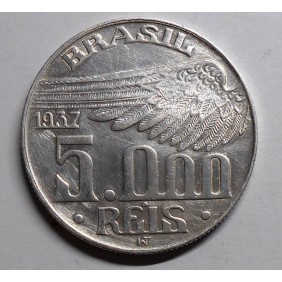 BRAZIL 5000 Reis 1937 AG Santos Dumont