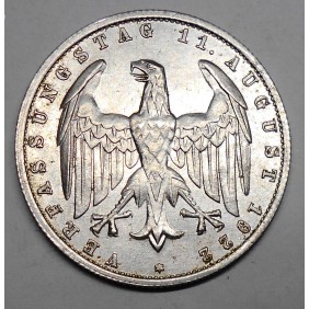 GERMANY WEIMAR REPUBLIC 3 Mark 1922 A 3th Anniversary Constitu