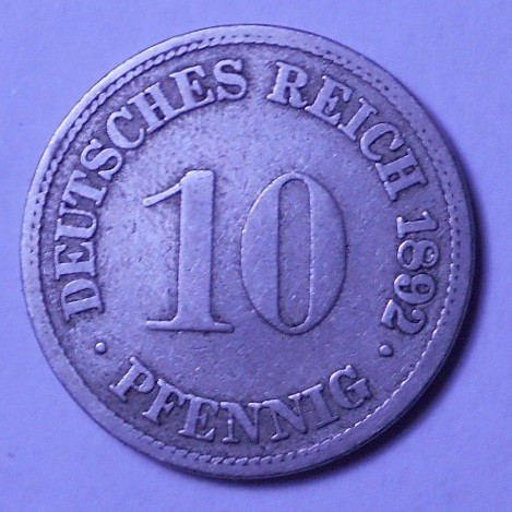 GERMANY EMPIRE 10 Pfennig 1892 F