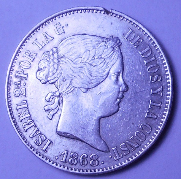 SPAIN 1 Escudo 1868 Isabel II AG