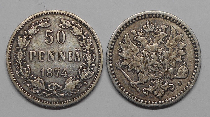 FINLAND 50 Pennia 1874 AG