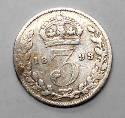 GREAT BRITAIN 3 Pence 1893 AG Victoria