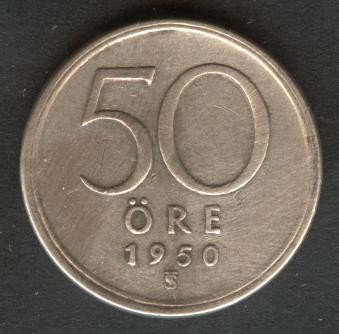 SWEDEN 50 Ore 1950 AG