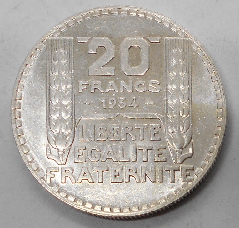 FRANCE 20 Francs 1934 AG Turin