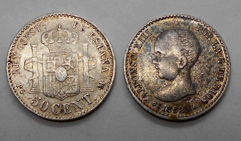 SPAIN 50 Centimos 1892 AG