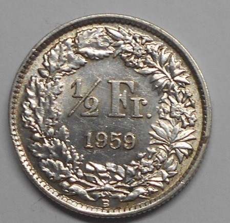 SWITZERLAND 1/2 Franc 1959 AG