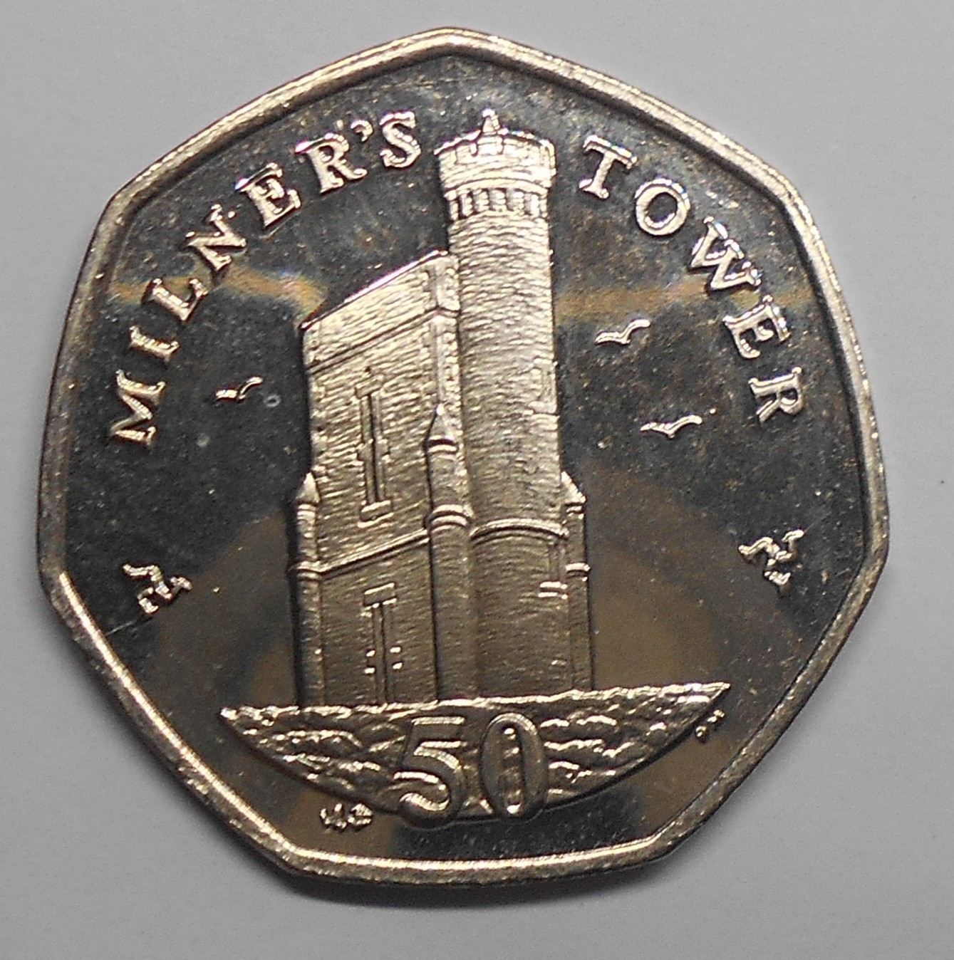 ISLE OF MAN 50 Pence 2007 AB Milner's Tower rare