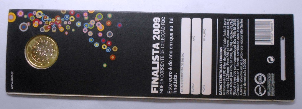PORTUGAL 1 Euro 2009 Finalista coin card