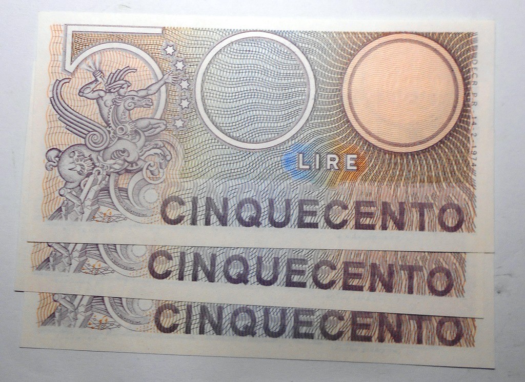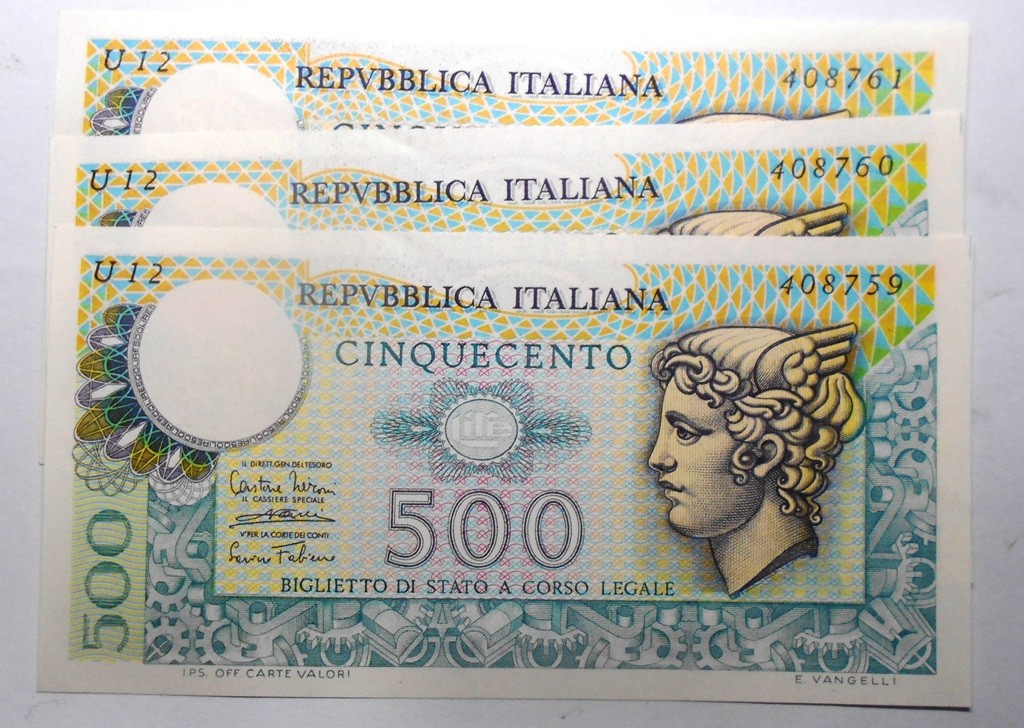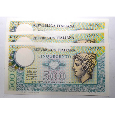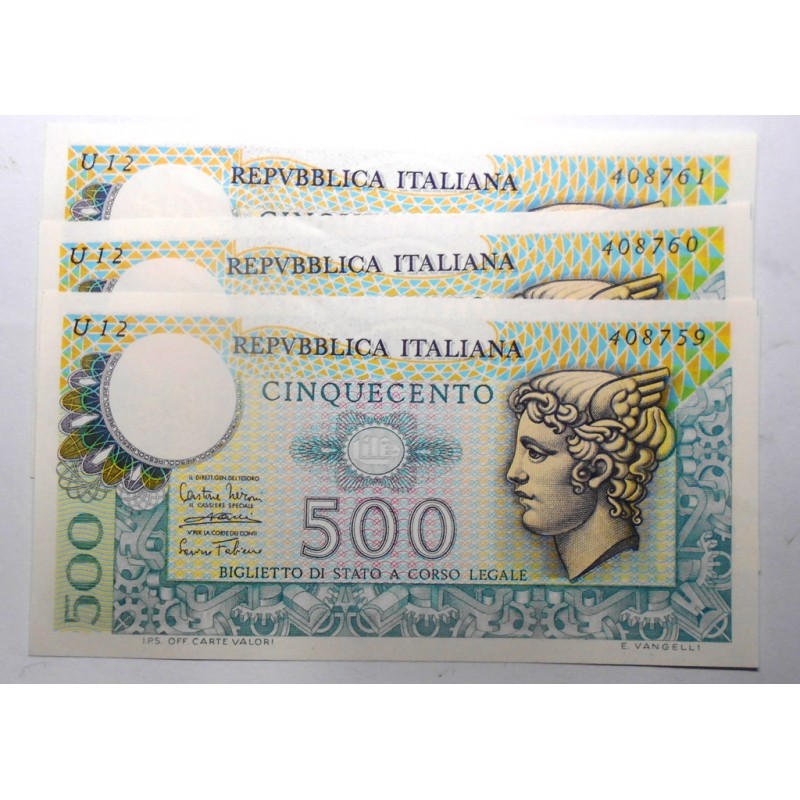 3. 500 Lire Mercurio 1974 Lotto n.3 banconote da mazzetta FDS