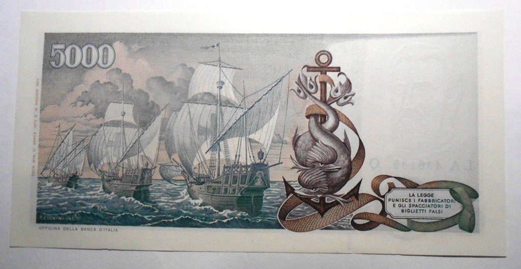 5000 Lire 1973 COLOMBO 3 CARAVELLE FDS