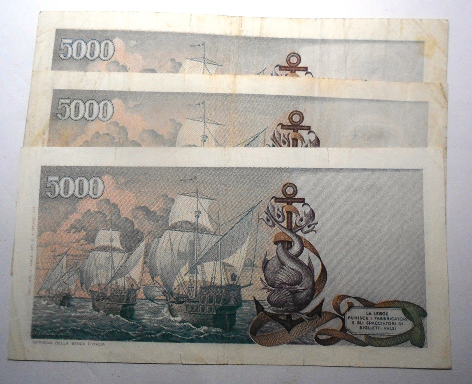 5000 Lire 1973 COLOMBO 3 CARAVELLE