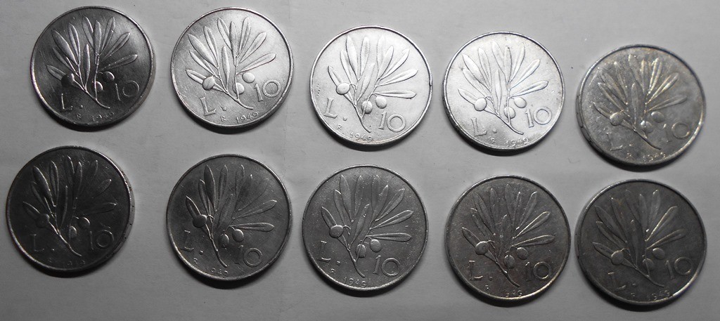 10 Lire 1949 Lotto n. 10 pz. Conservazione BB