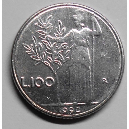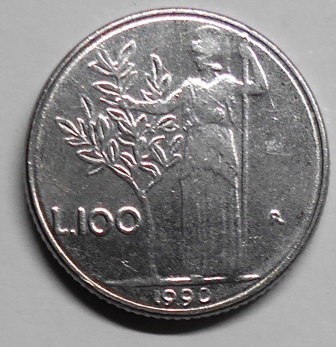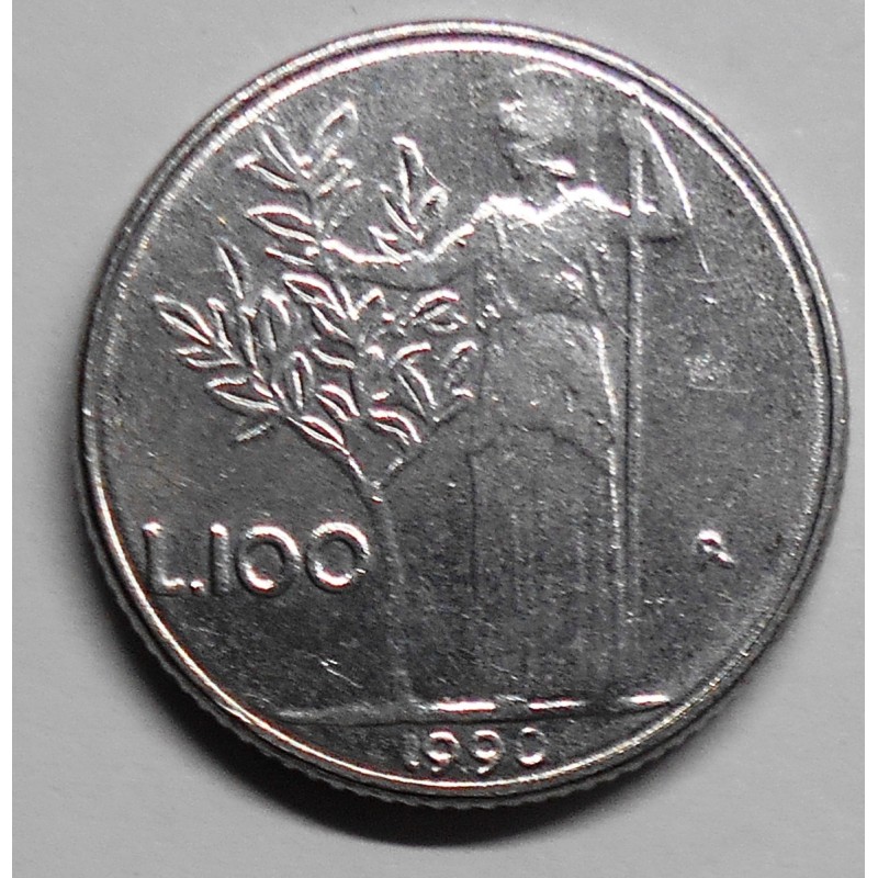 100 Lire 1990 doppio bordo c. asse spostato a 30°