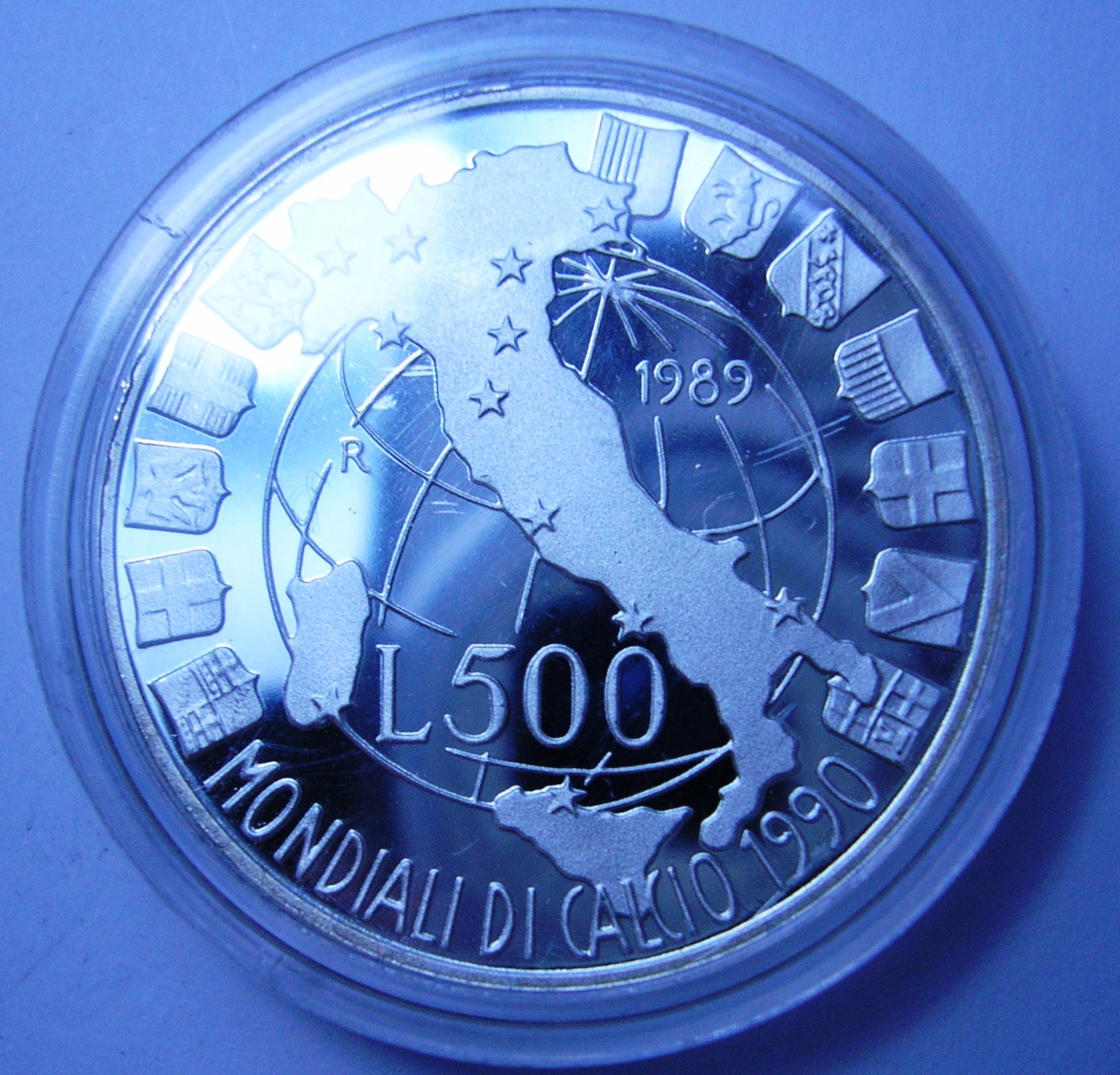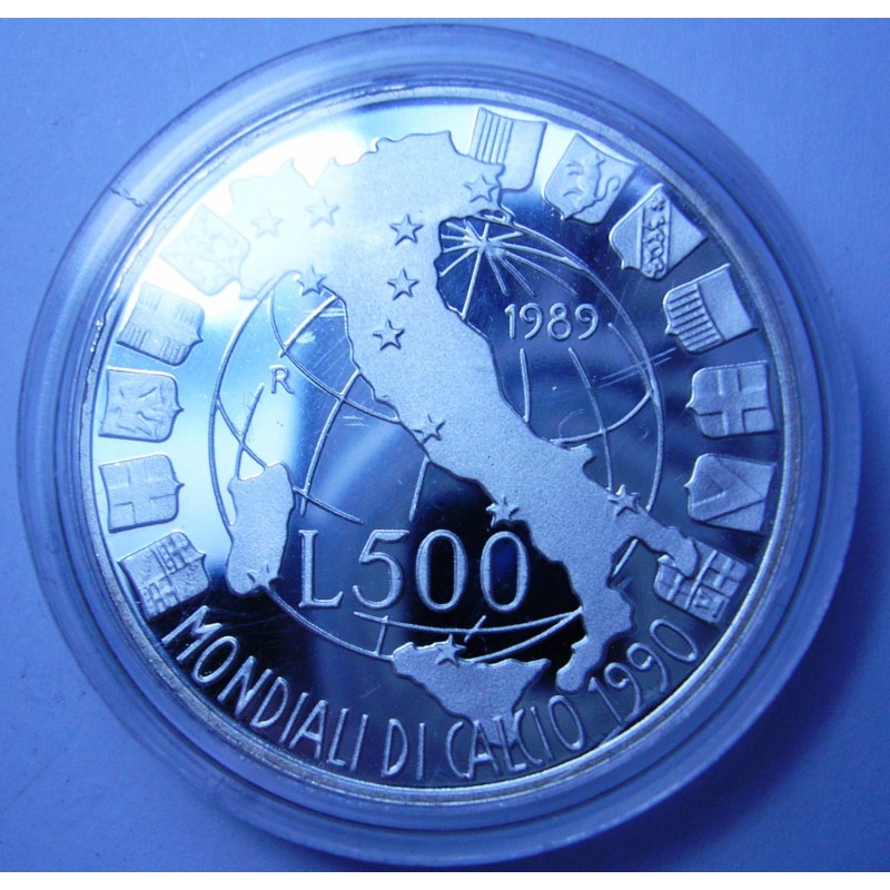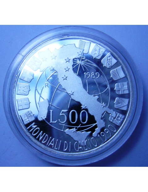 500 Lire 1989 MONDIALI DI CALCIO AG PROOF