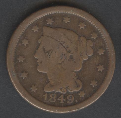 USA 1 Cent 1849 Braided Hair