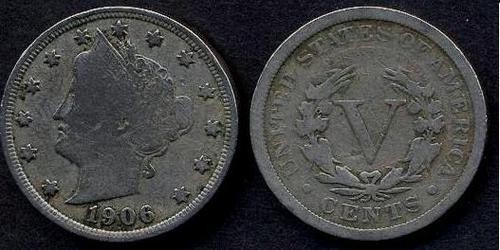USA Liberty Nickel 5 Cents 1906