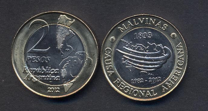 ARGENTINA 2 Pesos 2012 Malvinas Falkland War