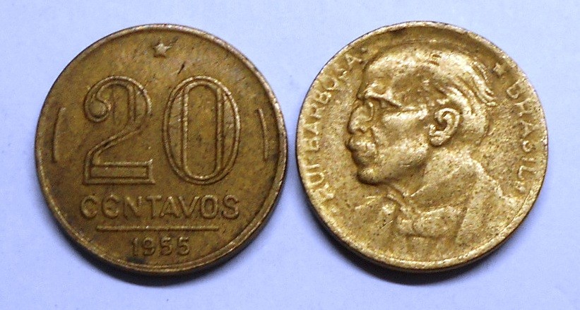 BRAZIL 20 Centavos 1955 R. Barbosa
