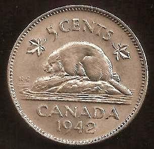 CANADA 5 Cents 1942 nickel