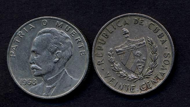 4. CUBA 20 Centavos 1968 Jose Marti