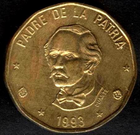 DOMINICAN REPUBLIC 1 Peso 1993 P. Duarte