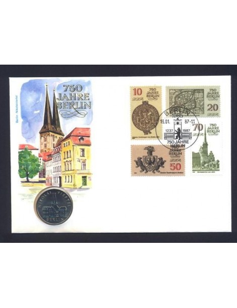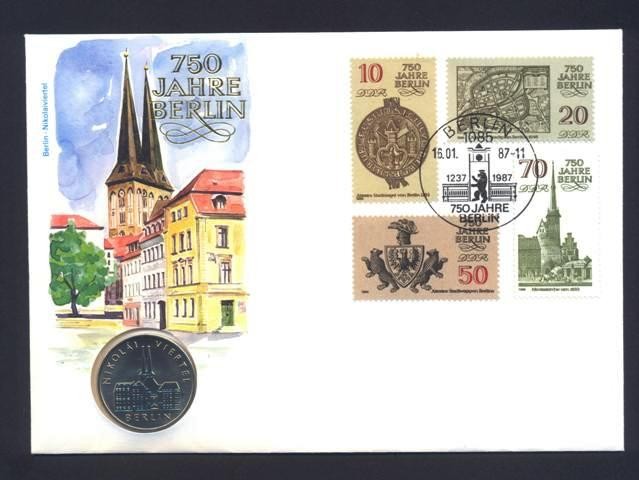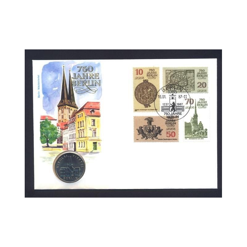 NUMISBRIEF DDR Berlin 5 Mark 1982 with stamp