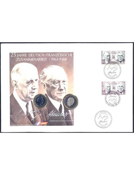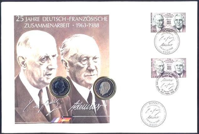 NUMISBRIEF Germany De Gaulle Adenauer with stamp