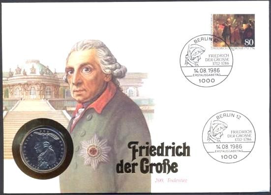 NUMISBRIEF Friedrich Der Grobe 5 Mark 1986 With Stamp