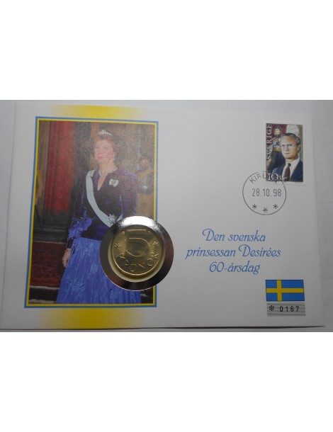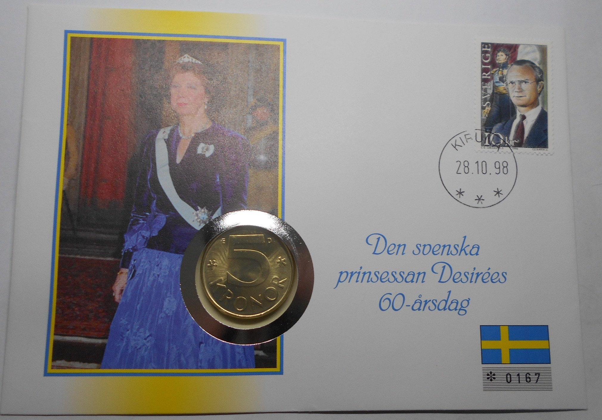 NUMISBRIEF Sweden 5 Kronor 1991D with stamp