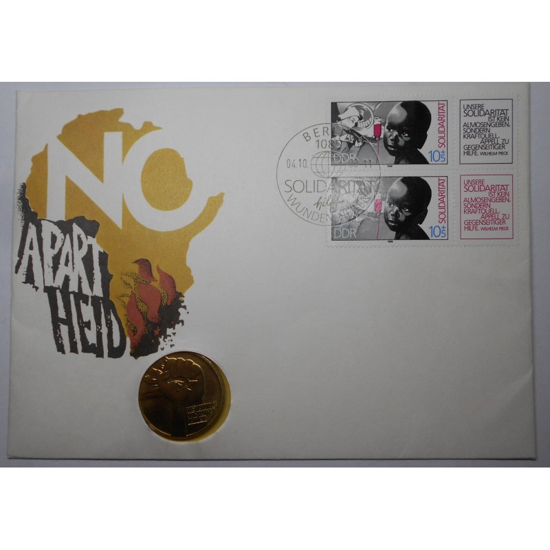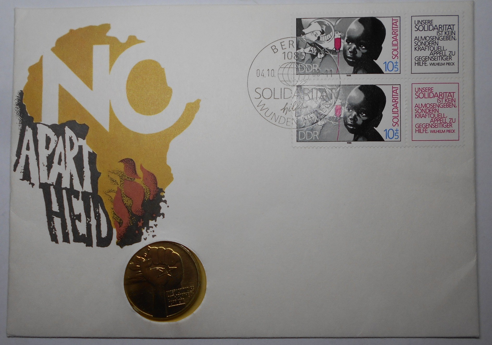 NUMISBRIEF DDR 5 Mark 1978 Anti Apartheid with stamp