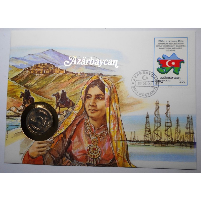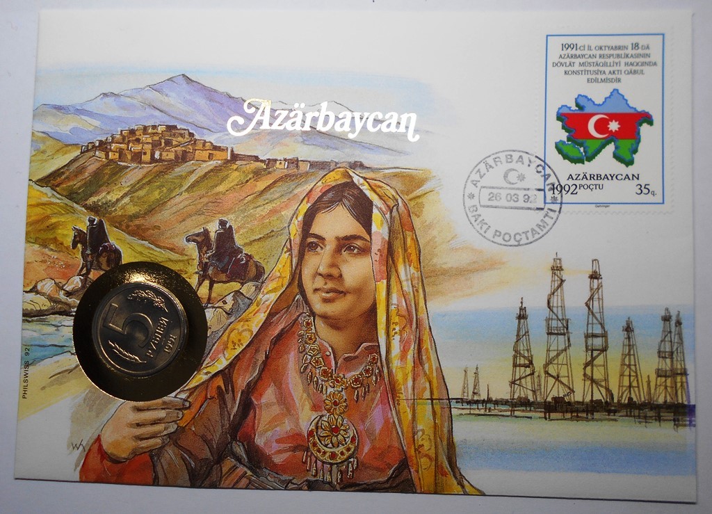NUMISBRIEF Azarbaycan - Russia 5 roubles 1991 with stamp