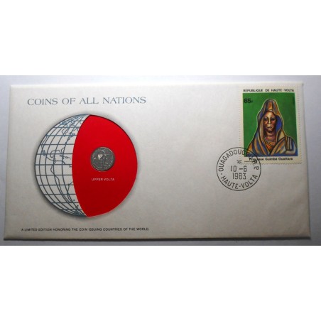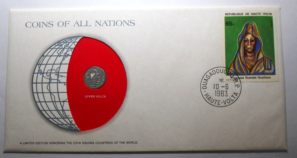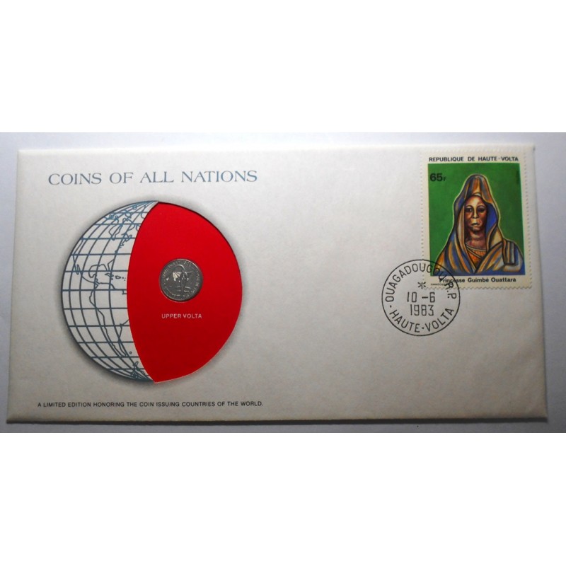 NUMISBRIEF Upper Volta 1 Franc 1982 with stamp