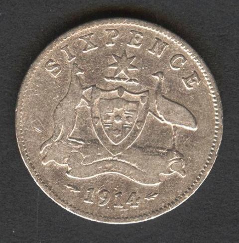 AUSTRALIA 6 Pence 1914 AG
