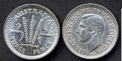 AUSTRALIA 3 Pence 1951PL AG