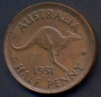 AUSTRALIA 1/2 Penny 1951 without dot