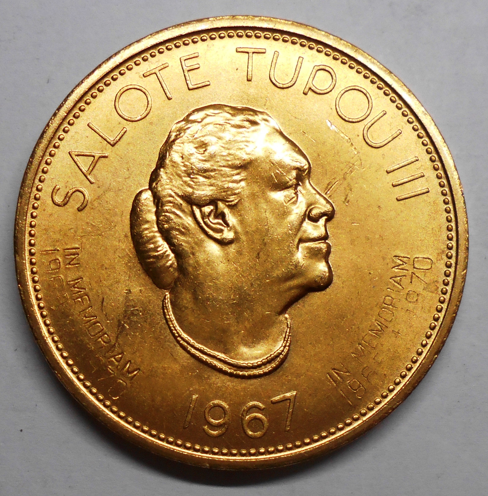 TONGA 1 Pa'anga 1967 COUNTERMARKED rare