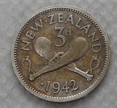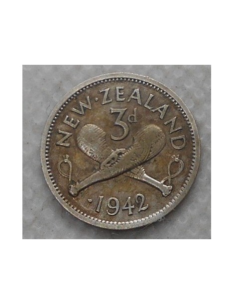NEW ZEALAND 3 Pence 1942 AG with 1 dot rare