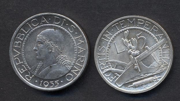 SAN MARINO 5 Lire 1935 AG