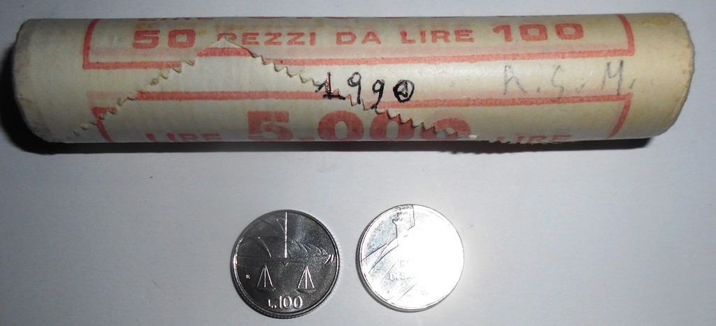 SAN MARINO 100 Lire 1990 rotolino 50 pz.