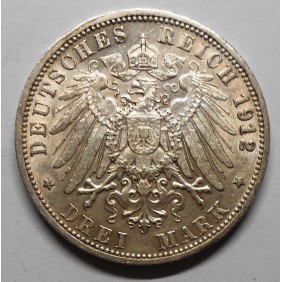 WURTTEMBERG 3 Mark 1912 F Wilhelm II AG