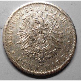 WURTTEMBERG 5 Mark 1876 F Karl Koenig AG