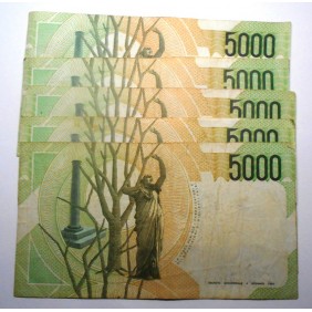 Nuovo 5000 Lire Bellini 1985 (1996) Lotto n.5 banconote Lettera D BB - Pick 111c Prezzo 12,50 € Acquista Add to wishlist