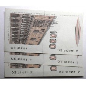 1000 Lire Marco Polo Lettera E Filo di Sicurezza modificato Lotto n.3 banconote da mazzetta FDS
