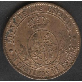 SPAIN 5 Centimos 1868 OM 8/Pointed Star