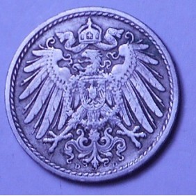 GERMANY EMPIRE 5 Pfennig 1905 D