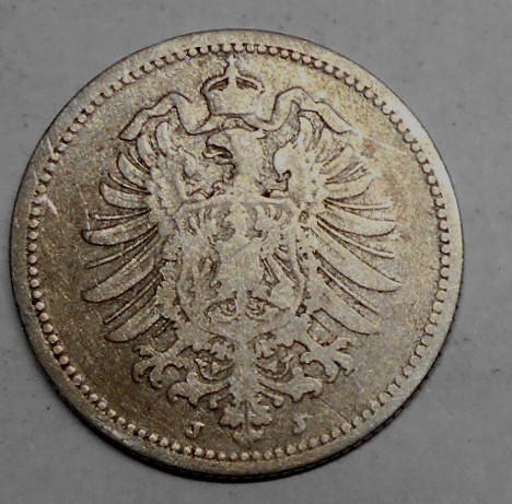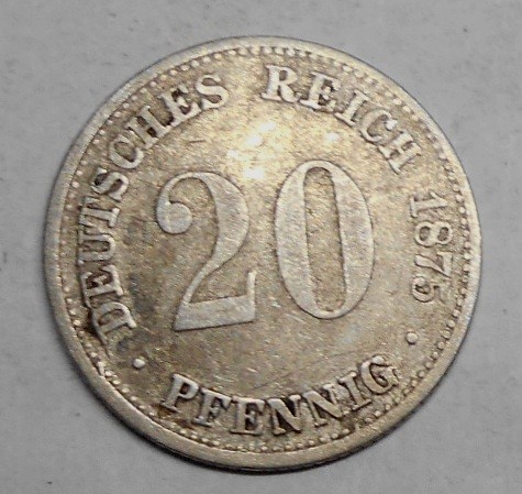 GERMANY EMPIRE 20 Pfennig 1875J AG