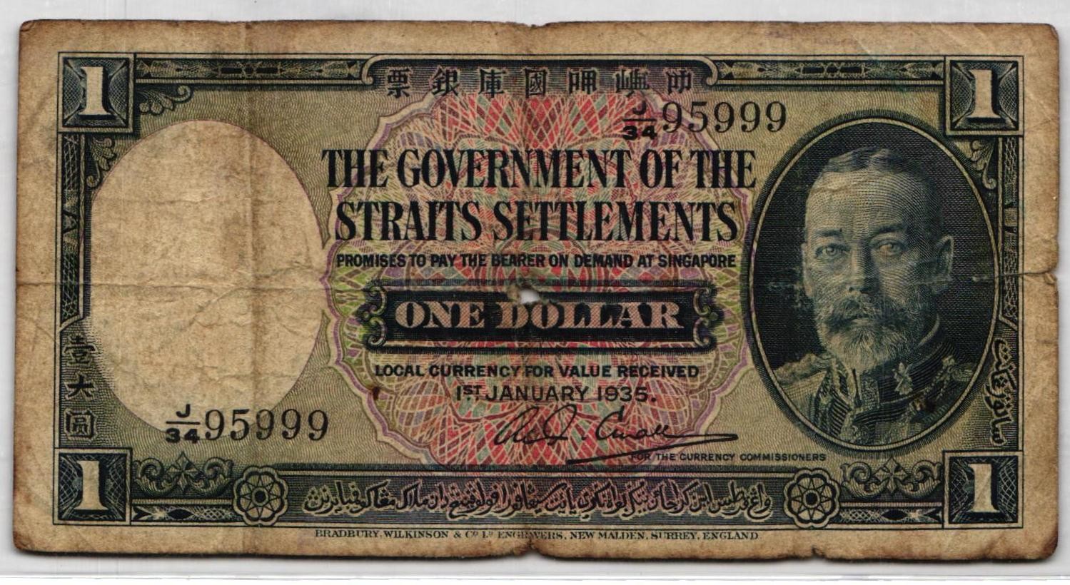STRAITS SETTLEMENTS 1 Dollar 1935