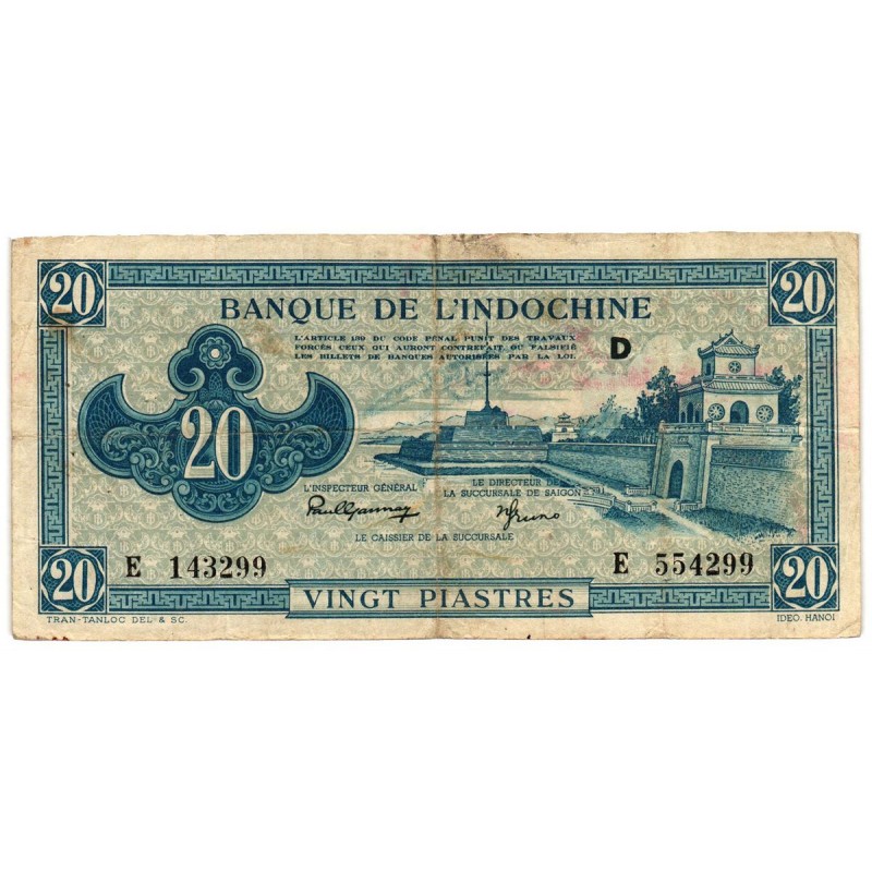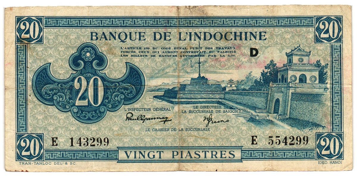 FRENCH INDOCHINA 20 Piastres 1942-45