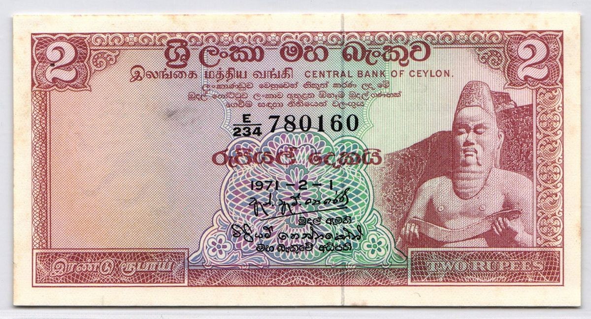 CEYLON 2 Rupees 01.02.1971 (Pin Hole)