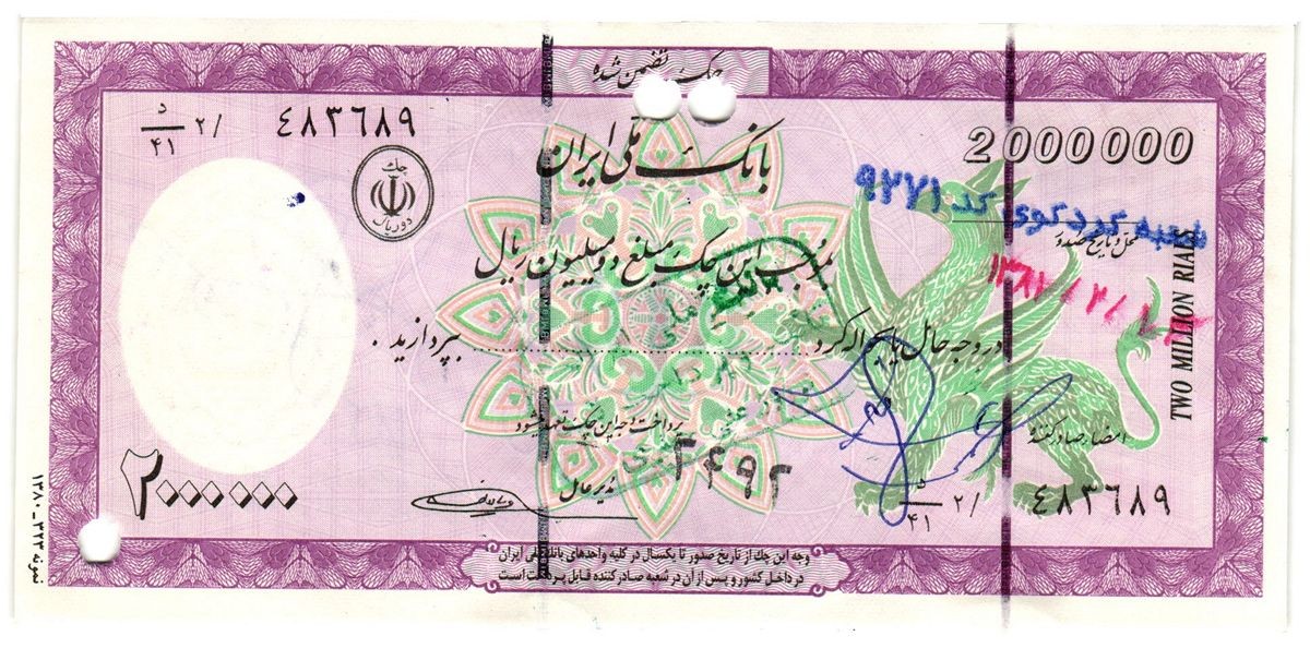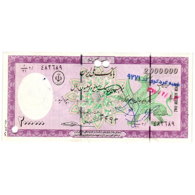 Gli Emergency Checks della Bank Melli Iran furono emessi come misura straordinaria in un periodo di grave carenza di cartamoneta ufficiale ad alto taglio.